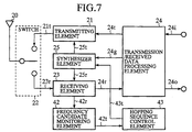 - the synthesizer part 25 When the synthesizer part 25 indicates a predetermined frequency to the transmitting part 21, the former provides the transmission frequency data 25t to the latter. When the synthesizer part 25 indicates a predetermined frequency to the receiving part 23, the former provides the received frequency data 25t to the latter.