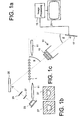 - the cross-sections of the individual optical fibers kept together to form a fiber ribbon are shown at 1, since the fibers are assumed to be located perpendicularly to the plane of the paper in Fig. 1a.