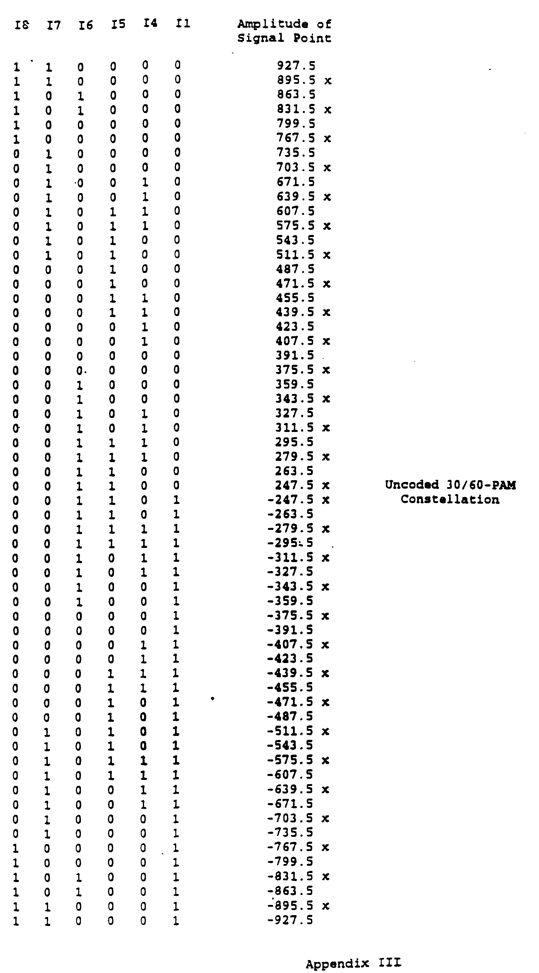 - the coder output is a sequence of signal points each selected from a respective subset of the subset sequence thus defined.