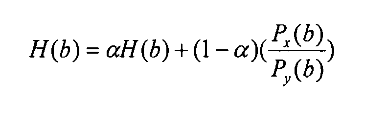 - the well-known Hanning window is applied to the processed inputs. They are then transformed into their respective frequency domain using the well-known fast Fourier transform (FFT), blocks 155 and 156, and then to Bark Scales, P x ( b ) and P y ( b ), using the Bark Frequency Warping technique in blocks 165 and 166.