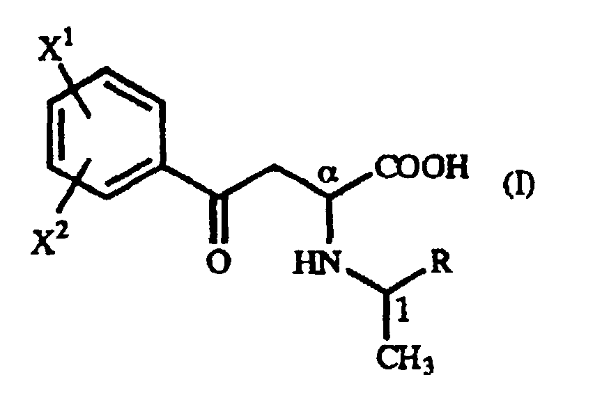 - The present invention also relates to a process for producing a γ-oxo-homophenylalanine derivative (I) which comprises reacting a β-benzoylacrylic acid derivative of the general formula(II): (wherein X1 and X2 are as defined above) (hereinafter referred to as "β-benzoylacrylic acid derivative (II)") with a 1-arylethylamine derivative of the general formula (III): (wherein R is as defined above) (hereinafter referred to as "1-arylethylamine derivative (III)").