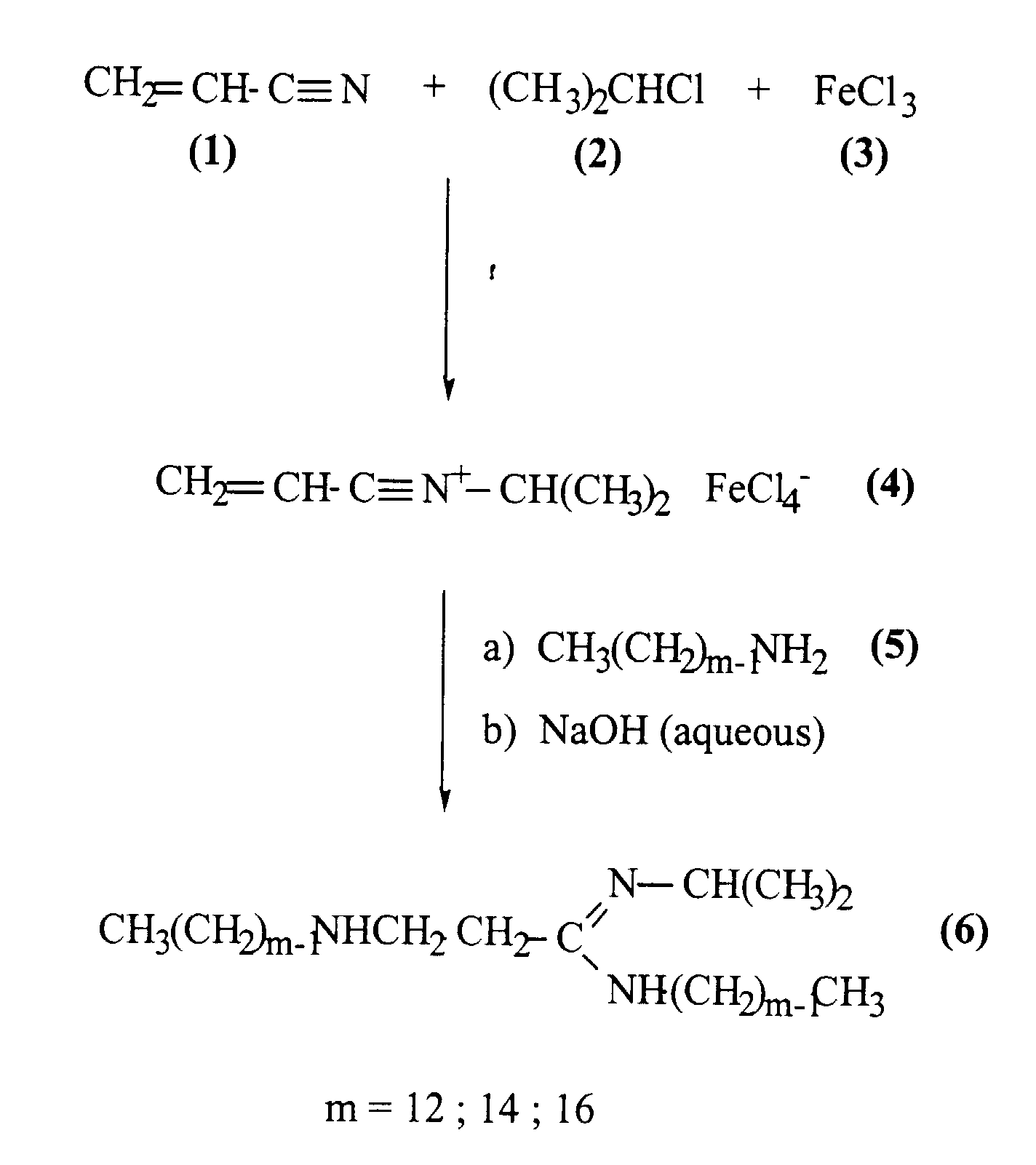 - INCKJCSZJIVWJF-UHFFFAOYSA-N n-propan-2-yl-n'-tetradecyl-3-(tetradecylamino)propanimidamide Chemical compound CCCCCCCCCCCCCCNCCC(NC(C)C)=NCCCCCCCCCCCCCC INCKJCSZJIVWJF-UHFFFAOYSA-N 0.000 description 4