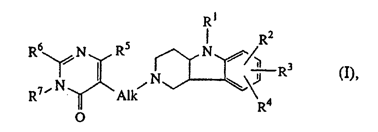 • Most preferred compounds of formula (I) are 3-[2-(8-fluoro-1,3,4,4a,5,9b-hexahydro-2 H -pyrido[4,3-b]indol-2-yl)ethyl]-2-methyl-4 H -pyrido[1,2-a]pyrimidin-4-one; 6-[2-(8-fluoro-1,3,4,4a,5,9b-hexahydro-2 H -pyrido[4,3-b]indol-2-yl)ethyl]-7-methyl-5 H -thiazolo[3,2-a]pyrimidin-5-one; and 6-[2-(8-chloro-1,3,4,4a,5,9b-tetrahydro-2 H -pyrido[4,3-b]indol-2-yl)ethyl]-7-methyl-5 H -thiazolo[3,2-a]pyrimidin-5-one; the stereoisomeric forms and the pharmaceutically acceptable addition salts thereof,