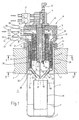 - nozzle ring 34 In the nozzle ring 34 is a pot or cap-shaped end cover 35 used on the conical inner wall 36 of the nozzle ring 34 with a corresponding cone angle Circumferential area is supported and in the axial direction protrudes the nozzle ring 34 into the furnace chamber 1.