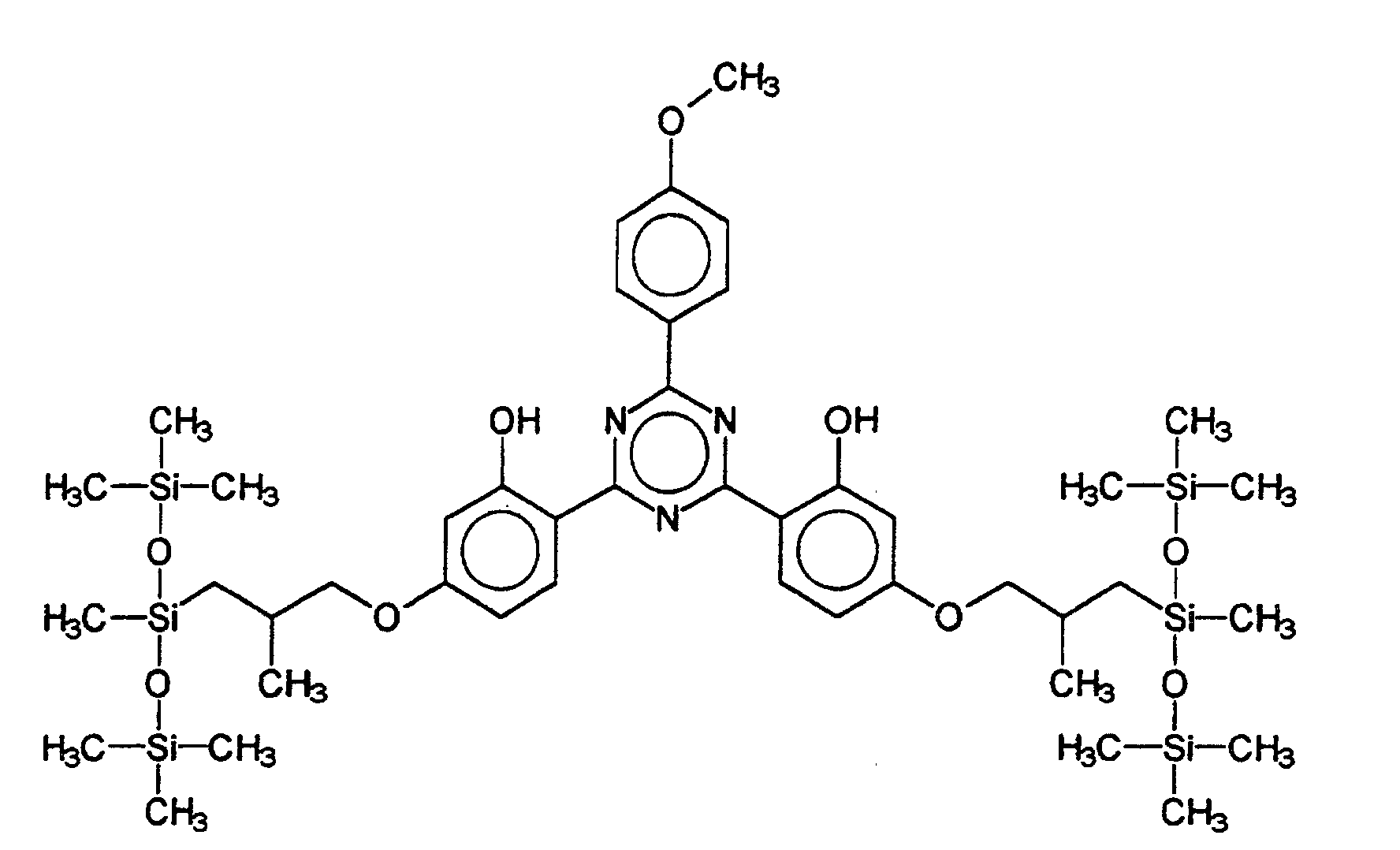 - JGUMTYWKIBJSTN-UHFFFAOYSA-N 2-ethylhexyl 4-[[4,6-bis[4-(2-ethylhexoxycarbonyl)anilino]-1,3,5-triazin-2-yl]amino]benzoate Chemical compound C1=CC(C(=O)OCC(CC)CCCC)=CC=C1NC1=NC(NC=2C=CC(=CC=2)C(=O)OCC(CC)CCCC)=NC(NC=2C=CC(=CC=2)C(=O)OCC(CC)CCCC)=N1 JGUMTYWKIBJSTN-UHFFFAOYSA-N 0.000 claims 1