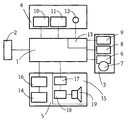 - the output arrangement 5 can have a display device 14 and a speech output circuit 15 have. Another is used to control the display device 14 Control circuit 16 also contained in the output arrangement 5 the speech output circuit is also e.g. a speech synthesis circuit 17, a Amplifier 18 and a loudspeaker 19.