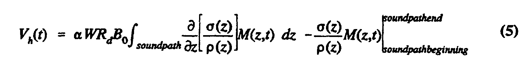 • V h (t) ⁇ R d WB 0 ⁇ soundpath ⁇ ( z ) v ( z, t ) dz .