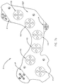 - a Patent to Manoli, No, 4,583,549 describes an ECG electrode pad in which six conductive discs are plated and etched on a flexible adhesive pad in a clinically conventional predetermined pattern effective for precordial ECG electrode placement. Reproducible attachment of said six electrodes to a subject's chest in the proper arrangement for use with standard ECG machines is thus made possible by a single application of an electrode pad of an appropriate size for use with any subject.