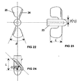 • the balancing weight 18, represented on Figs. 13 to 15, is symmetrical to the plane of section A, being linked by a connecting rod to the main body 16' of the mobile part 16, forms a semi-arch defined by an elliptic section not to large in order to make it inert to the waving effects and of narrow thickness for relatively easier water ripping, and with a mass that makes the mobile structure centre of mass to match with the axis of the bearing pedestal 22.