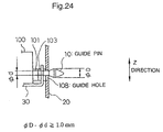 - the back panel 102 moves in the direction of arrow A up to the maximum movable range for position matching. There may be positioning error between the connectors even after the gap between the guide pin 107 and the guide hole 108 becomes 0.