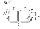 - the split ends of the rings are connected to each other by loading capacitances 86 and 87, respectively.