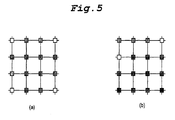 - Fig. 5a shows an arrangement of chrominance shape information extracted with respect to the luminance shape information of Fig. 3 by the conventional conservative sub-sampling method, where " ⁇ " indicates background shape pixel and " ⁇ " indicates object shape pixel.