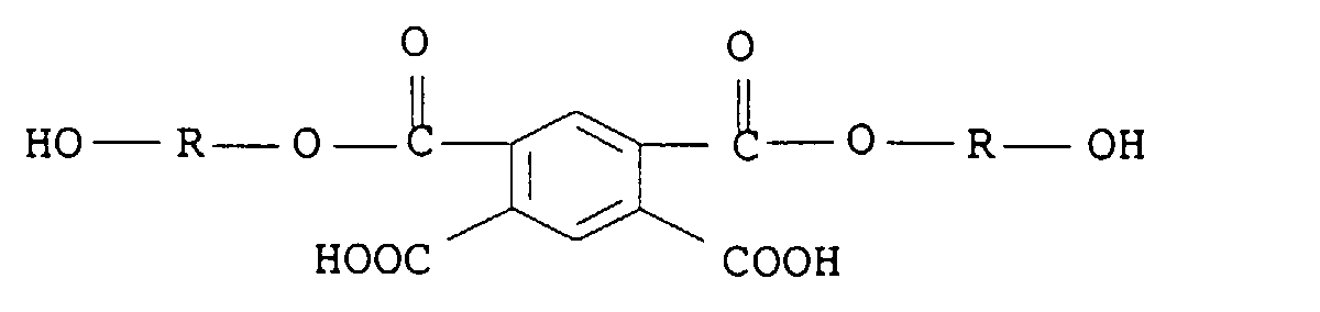- polyester acrylates are also condensation products based on esters of hydroxyl groups Acrylic acid and / or methacrylic acid with at least divalent Alcohols. These include e.g. B. 2-hydroxyethyl acrylate, 2-hydroxyethyl methacrylate, 2-hydroxypropyl acrylate, 2-hydroxypropyl methacrylate, 3-hydroxybutyl acrylate, 3-hydroxybutyl methacrylate, 4-hydroxybutyl acrylate, 4-hydroxybutyl methacrylate, 6-hydroxyhexyl acrylate, 6-hydroxyhexyl methacrylate, 3-hydroxy-2-ethylhexyl acrylate, 3-hydroxy-2-ethylhexyl methacrylate, di (meth) acrylic acid ester of 1,1,1-trimethylolpropane or glycerin. These hydroxyl groups containing esters can be terminated with polyesterols Carboxyl groups or the dicarboxylic acids forming these polyesterols and glycols are polycondensed