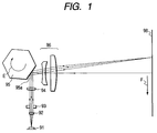 - the beam deflected and reflected by the deflection surface 95a of the optical deflector 95 is guided through a scanning optical element (f ⁇ lens) 96 having the f ⁇ characteristics onto a photosensitive drum surface 98 as a surface to be scanned and the photosensitive drum surface 98 is optically scanned with the beam in the direction of arrow F by rotating the optical deflector 95 in the direction of arrow E.