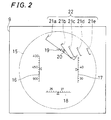 - the respective path marks 21a through 21e are indicated with inclination corresponding to a difference between the target bank angle of the aircraft supposed when the aircraft is positioned at each path mark 21 and the current bank angle of the aircraft. Because the bank angle of the aircraft needs to be tilted to the right in Fig. 2, the respective path marks 21a through 21e are indicated while inclining to the right. Accordingly, it is possible to turn accurately along the respective path marks 21a through 21e by controlling so that the angle of inclination of the path mark 21a which is the closest mark where the own-aircraft symbol 19 first passes through coincides with the angle of inclination of the own-aircraft symbol 19.