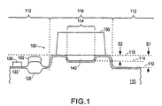 - the separation S1 between low plane 112 and high plane 116 should greater than the combined height of field oxide 120 and interconnect region 132 because interconnects (region 132) may overlie field oxide 120. Accordingly, a typical separation S1 is on the order of 1 mm.