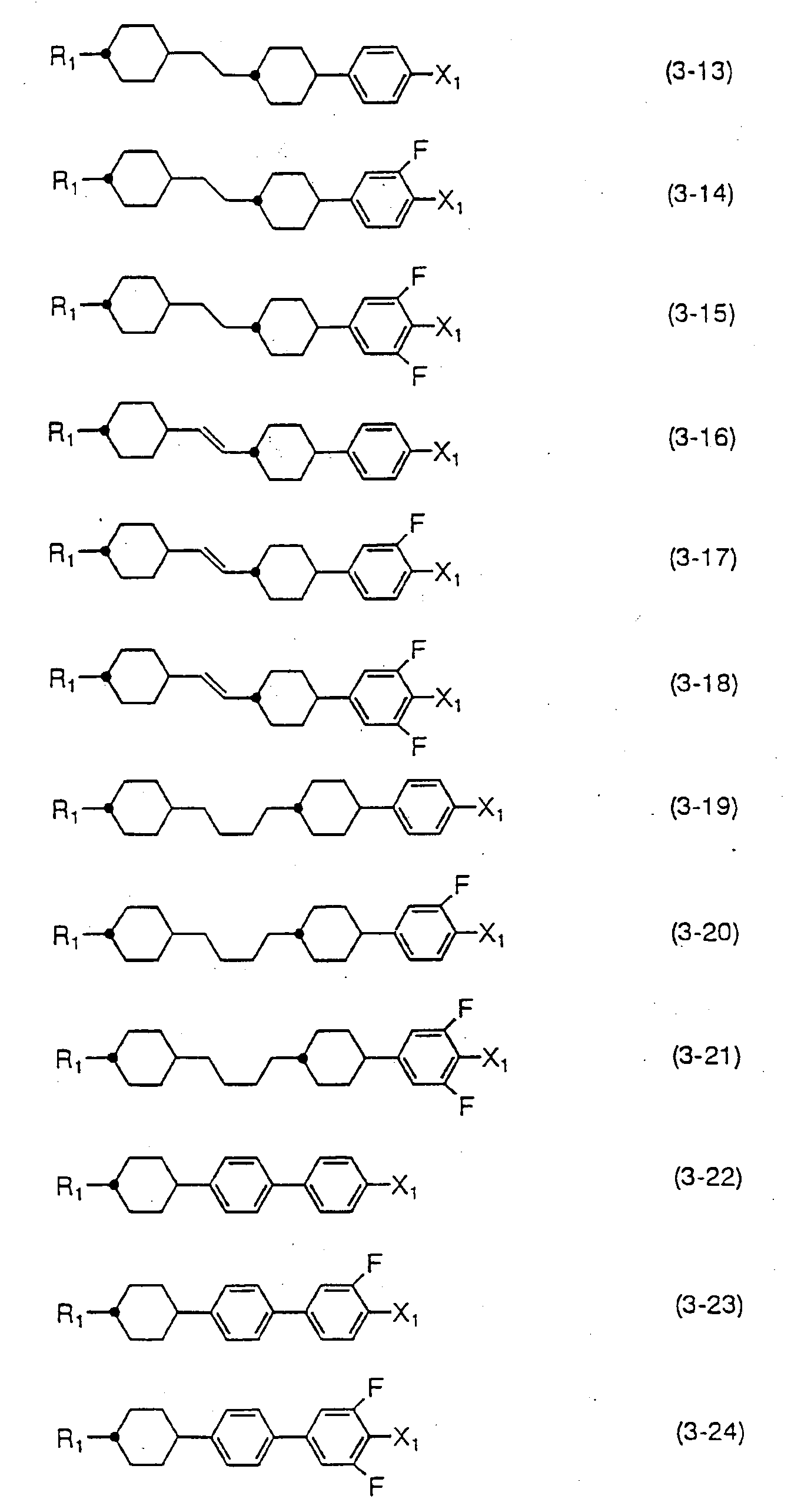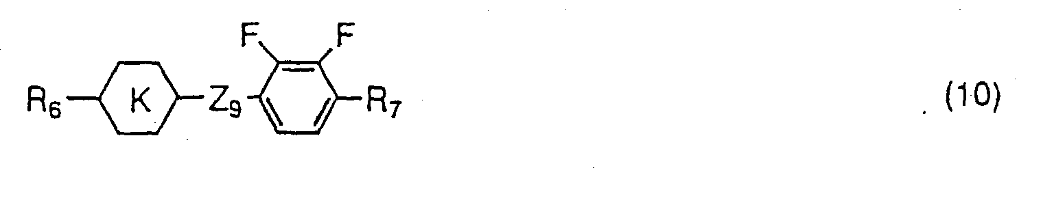 - the compound expressed by one of the general formulas (2) to (4) can be used in the range of 0.1 to 99.9 % by weight based on the total amount of liquid crystal composition when liquid crystal compositions for TFT are produced, the amount is preferably 10 to 97 % by weight and more desirably 40 to 95 % by weight. Further, the compound expressed by one of the general formulas (7) to (9) may further be incorporated for the purpose of adjusting viscosity of liquid crystal compositions. Also, when liquid crystal compositions for STN display mode or TN display mode are produced, the compound expressed by one of the general formulas (2) to (4) can be used. In this case, the amount of the compound to be used is preferably less than 50 % by weight.