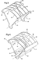 - the outlet opening is arbitrarily divided by a center rib into an upper, so called defrost opening D, and a lower, air conditioning opening A, but these lie on a common semi cylindrical envelope, and may be considered as one opening.