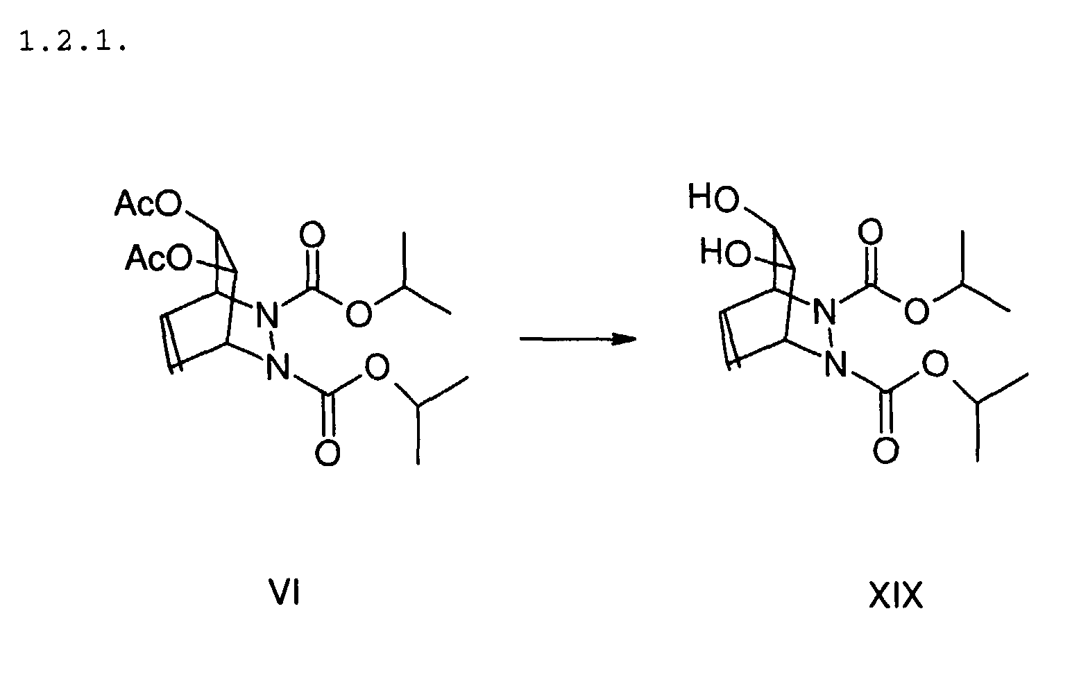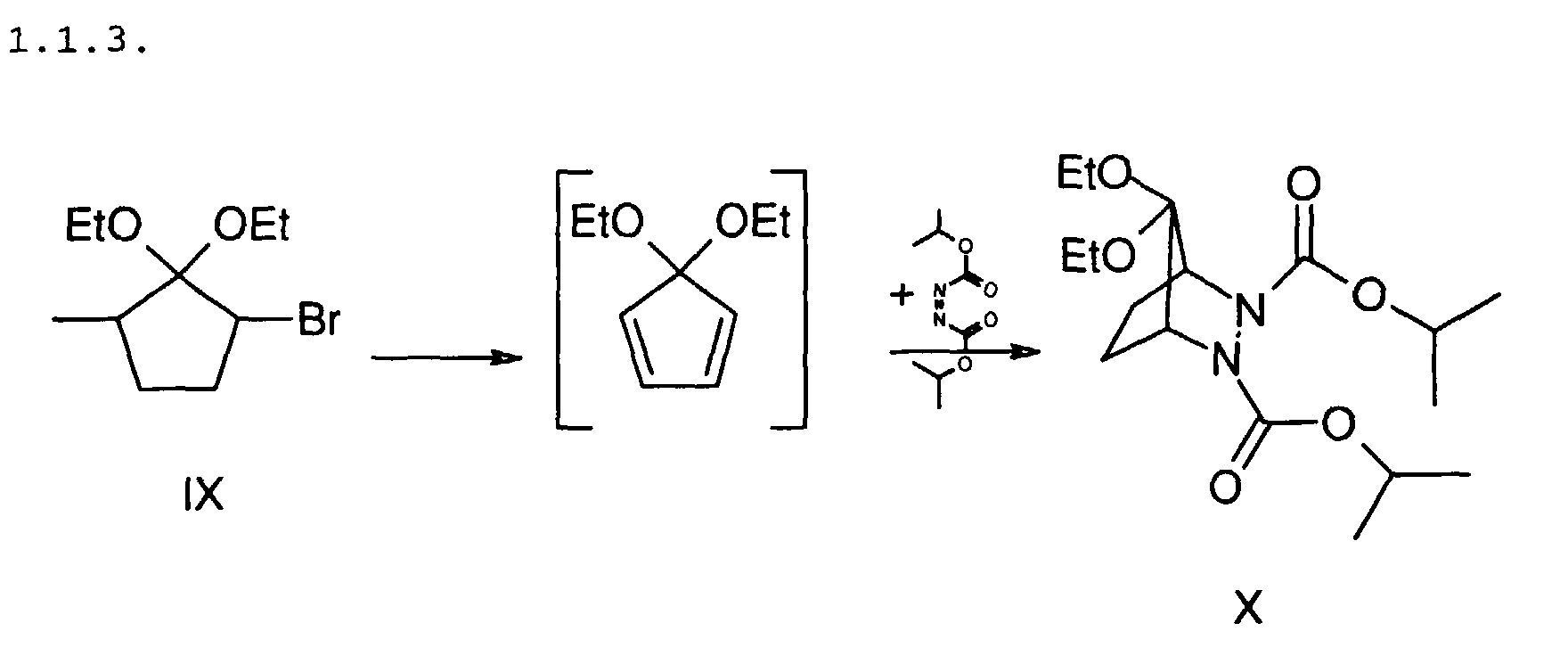 - Cyclopentadiene is added dropwise to 3.22 g of ice-cold diisopropylazodicarboxylate until the reaction solution has decolorized. The volatile constituents are distilled off and the residue is purified by chromatography. XVII is obtained as a colorless oil.