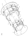 - a fixed structure consisting of a cylindrical shell 13 of axis 7 and a flange 14 essentially, delimits a central duct 12 serving also to the delivery of oxidizer to the nose 6a of the burner 6.