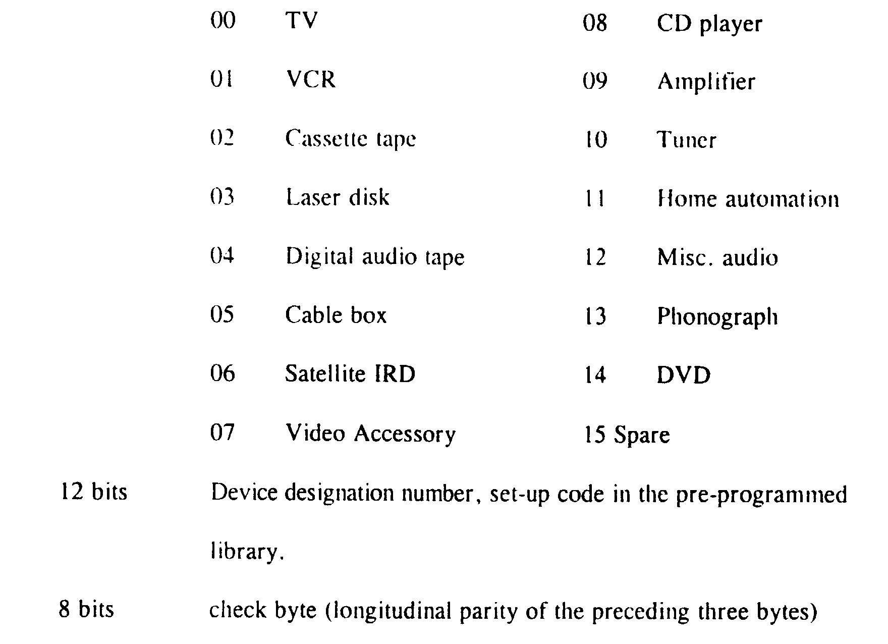 - the present invention is directed to providing a system wherein the devices to be controlled and the remote control unit are ready to enter into communication with each other as soon as the device is plugged into a power source, and without requiring the user to program or code in a set of commands: that is, the remote control unit can be setup with minimal intervention and involvement of the user.