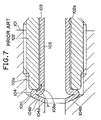 - the outer diameter of the flare 104 progressively decreases closer to the front end of the flare 104, and thus a front slanting surface 104b of the flare 104 is nearly slant-shaped.