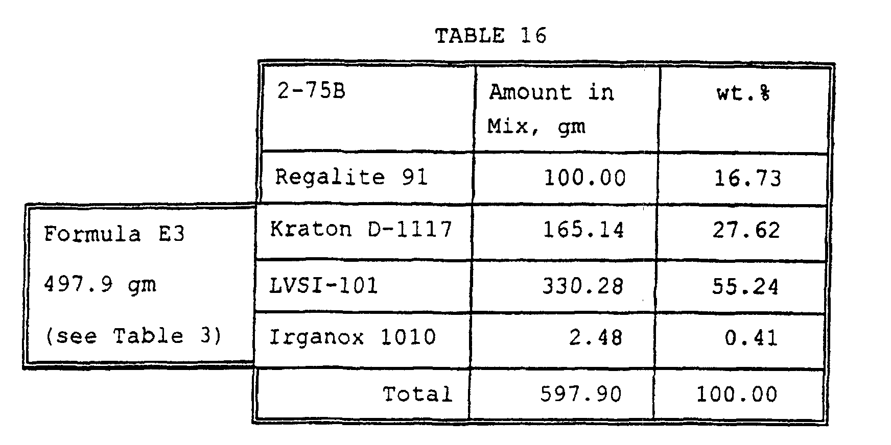 • the styrene-isoprene-styrene block copolymer forms physical cross links within the continuous phase at room temperature. This is because the polystyrene segments within the copolymer are incompatible with the polyisoprene segments, and they associate at room temperature to glassy domains which act as the physical cross links to form a three dimensional lattice.
