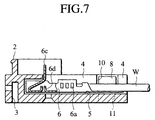 - the terminals 6 have electric wire press-contact portions 6a to which electric wires W are brought into press-contact respectively, housing engagement portions 6b which are engaged with the connector housing 1, tab portions 6c which are protruded to a side of the upper connecting surface 1a, and tab contact portions 6d (shown in FIG. 7) which contact with the tab portions 6c which are inserted from the lower connecting surface 1b.