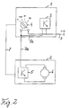 - the characteristic difference of the device of FIG. 2 compared that of Fig. 1 is that supply and Interrogation line between the ignition switch unit 1 and the steering wheel locking unit 2 not separately, but in a combined Form are provided, and the ignition lock has a current limiting function for the steering wheel locking unit.