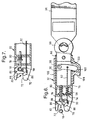 - the free end of the lever 96 projects outwardly through a slot 100 in the side wall of the body of the connector 32 so as to engage in a recess 102 in a finger grip 104 which is integrally formed with a sleeve 106.