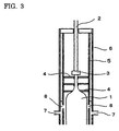 - the gas passage 24a is formed between the inner tube 22 and the outer tube 23 arranged outside the same, and an inert gas is supplied from the gas supplying inlet 24 to the gas passage 24a, so as to blow the inert gas into the inside of the inner tube 22 from the numeral gas blowing inlets 22a provided circumferentially and in the height direction on the wall surface of the inner tube 22.