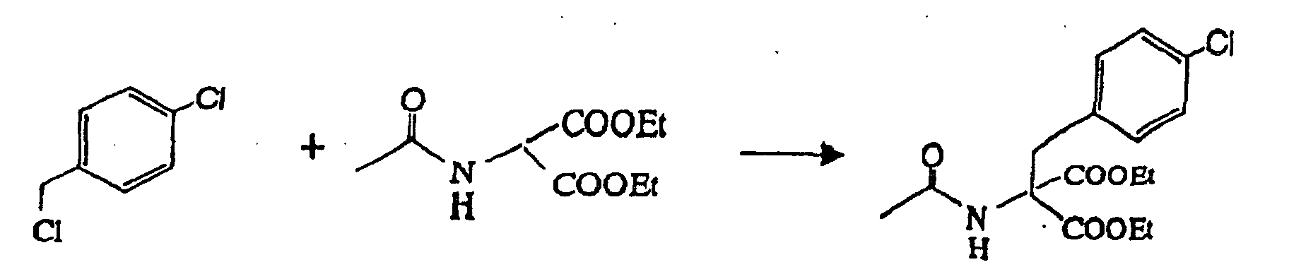 - HBZSFXOTCKUYOM-UHFFFAOYSA-N diethyl 2-acetamido-2-[(4-chlorophenyl)methyl]propanedioate Chemical compound CCOC(=O)C(C(=O)OCC)(NC(C)=O)CC1=CC=C(Cl)C=C1 HBZSFXOTCKUYOM-UHFFFAOYSA-N 0.000 description 2
