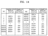 - Figure 2 is a table for showing the random data results of the registers r 0 through r 14 and scrambling results Do 0 through Do 7 when the initial values of the registers r 0 through r 14 shown in Figure 1 are set to be a hexadecimal number of "0001h” and input data D 0 through D 7 are "00h”. It can be seen from Figure 2 that the cycle of random data is 32K (32768).