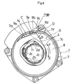 - the flat cable 4 has one end fixed to a terminal strap 14 that is electrically connected to a connector 5 and the other end fixed to the supporting member 11 mounted to the rotor housing 2.