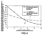 - FIG. 4 is a graph showing the moisture absorption distribution of a composite material in directions perpendicular thereto, wherein line 1 shows the moisture absorption distribution of a composite material after the elapse of 25 years under actual environment, and line 2 shows the moisture absorption distribution of a composite material which was moisture-absorbed for 36 weeks under a high humidity environment including a relative humidity of 95 %RH. Furthermore, the axis of ordinates denotes the percentage of a coefficient of moisture absorption to the maximum coefficient of moisture absorption, which shows the moisture content of a composite material per unit weight.