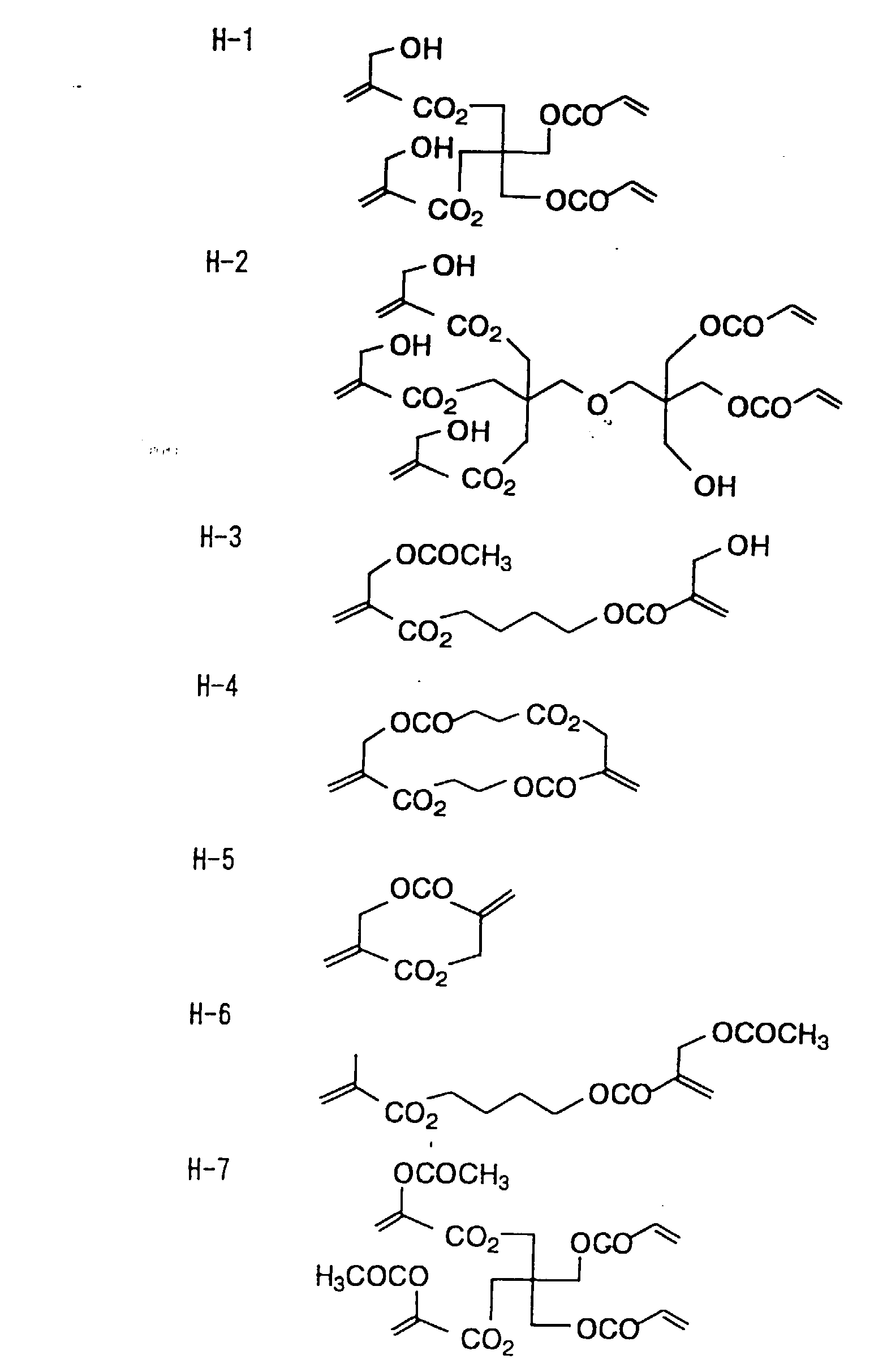 - the second is a recording material having sensitivity to an ultraviolet or visible laser ray at a wavelength of from 300 to 700 nm and for this material, a large number of recording materials are known, such as a radical polymerization-type negative recording material described in U.S. Patent 2,850,445 and JP-B-44-20189.