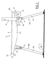 - the return means is for example mounted between a cross member 14a or 14b and the spacer 21 of a base 20a or 20b. It is further positioned so that the axis connecting its two attachment points passes either on one side of the axis 23 when the foot 20 is in the folded position, as can be seen in FIG. 4, on the other side of the axis 23 when the foot 20 is in the unfolded position as can be seen in FIG. 2.