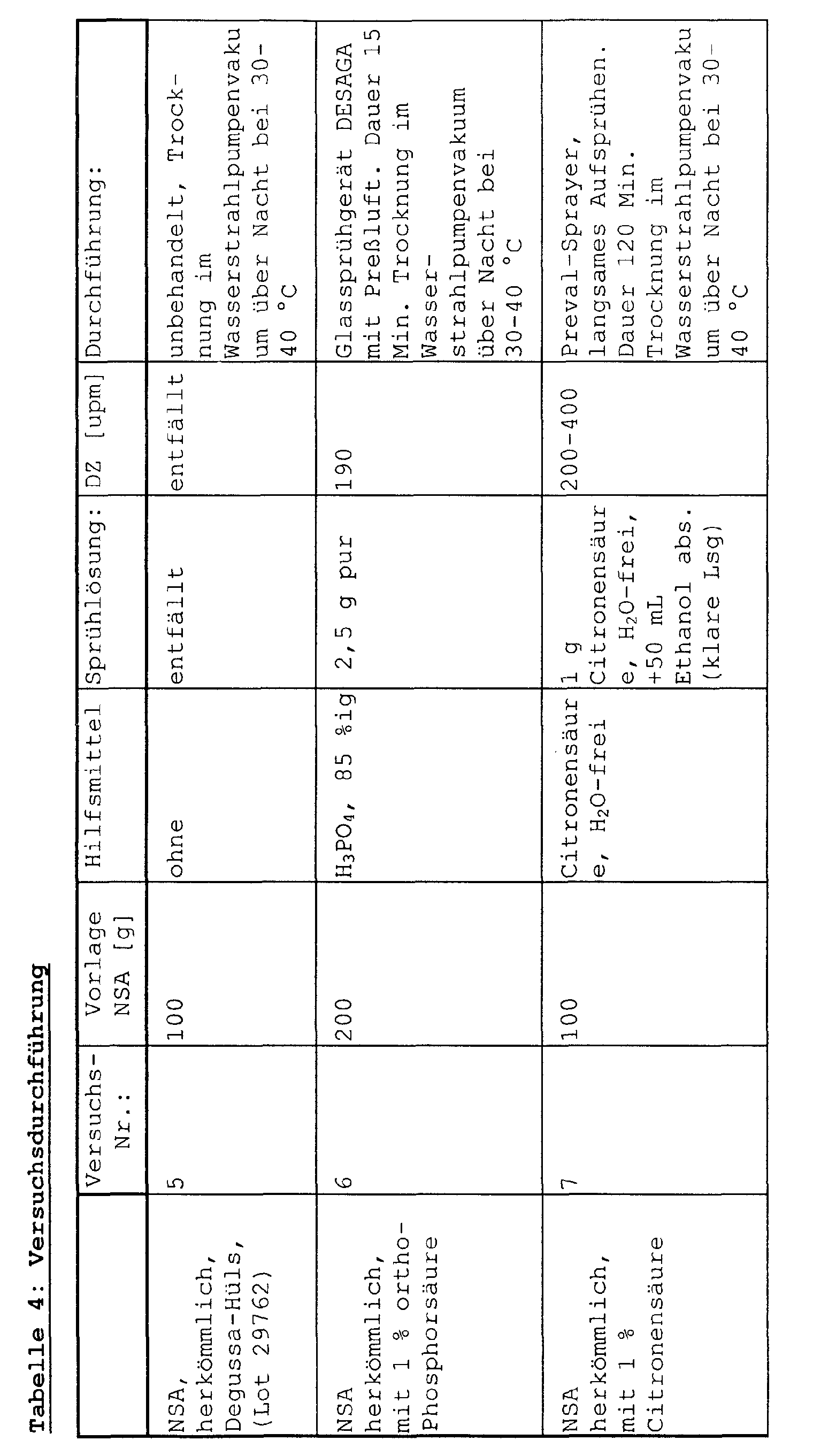 - the provision of the melt can be based on various Because of done. So it is possible to z. B. according to US 2,471 518, GB 777 517, DE-PS 828 247 or DE-PS 2 131 813 produced, dry and solid product regardless of Location of this production for further use to melt and according to the present invention to use. It is advantageous to use a device according to DE OS 25 17 053 and DE-PS 25 17 054 produced by NSA melt only a small proportion of impurities directly according to the to process the present invention further. This a particularly preferred variant is being implemented considerably easier and from an energetic point of view think. Depending on the origin of the melt, due to the manufacturing process, in addition to water Impurities of an organic or inorganic type include. The present invention finds application Melts with a NSA content of 90% by weight exceeds.
