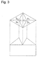 - a common base (x) of two faced faces (faces c 1 and c 2 ) of two reflective elements is formed so as to pass through positions (A 2 and B 2 ) from a set of corresponding intersections (A 0 and B 0 ) of a rhombic bottom face (A 0 -C 1 -B 0 -C 2 ) formed by two other bases (y and z) without passing through the intersections (A 0 and B 0 ).