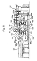 - the ink fountain device 3 can be moved by left and right switching means 5 as a pair (to be described later) toward and away from an ink fountain roller 6 which has a shaft similarly supported rotatably between the left and right frames 1, 2.