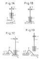 - Figs. 1A-1D show ultrasonic-assisted heat-pressing bonding, for interconnection and loop formation, in which 1 is a capillary, 2 is a gold wire, 3 is a torch electrode, 4 is a metal ball, 5 is an Al electrode, 6 is a semiconductor element, 7 is a clamper and 8 is a lead.