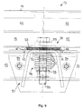 - the upper bearing part and the lower bearing part of the Swivel mounting each approximately parallel to the base plate has extending plate-shaped bearing section to which down in the swivel direction on both sides or connect angled plate-shaped side flanges at the top, that between the plate-shaped bearing sections and the side flanges of the upper and lower parts of the bearing the at least one elastic intermediate layer is provided, and that between this and at least two of the sides on both sides of the two plate-shaped bearing sections arranged side flanges one wedge gap widening outwards is provided.