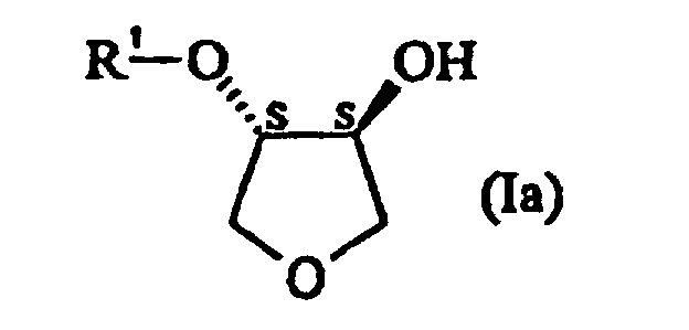 • the present invention also includes the novel compounds produced in the above-described process, i.e., the substantially enantiomerically pure (3 S ,4 S )- trans -3-alk(en)yloxy-4-hydroxy-tetrahydrofuran (Ia) and the substantially enantiomerically pure (3 R ,4 R )- trans -3-alk(en)yloxy-4-acyloxytetrahydrofurans (II).