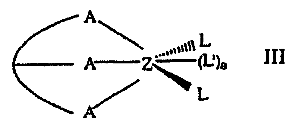 - bonds between each A atom of the pre-catalyst and the transition metal Z and between L and Z can be either dative or covalent. Dative bonds merely represent a relationship between an electron rich A atom and the metal Z whereby the electron density of the metal is increased by providing electrons to the empty orbitals of the metal and do not induce any change in the oxidation state of the metal Z. Similar considerations apply to the relationship between Z and L.