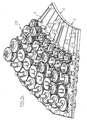 - each pair of guideways is associated with a series of notched wheels (15, 16, 17, 18, 19) arranged concentrically and tangential to one another.
