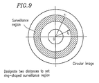 - the image data obtained by the imaging section is circular image data; and a ring-shaped region is set as the surveillance region by designating two distances from a center of the circular image data.
