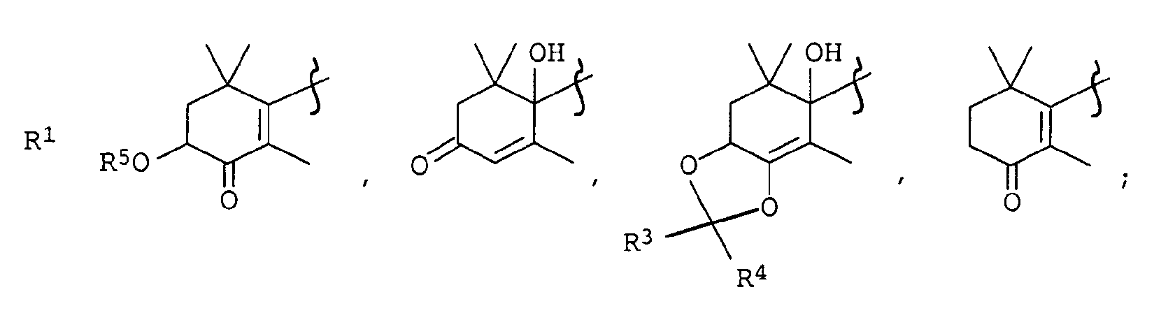 - C07C403/00—Derivatives of cyclohexane or of a cyclohexene or of cyclohexadiene, having a side-chain containing an acyclic unsaturated part of at least four carbon atoms, this part being directly attached to the cyclohexane or cyclohexene or cyclohexadiene rings, e.g. vitamin A, beta-carotene, beta-ionone