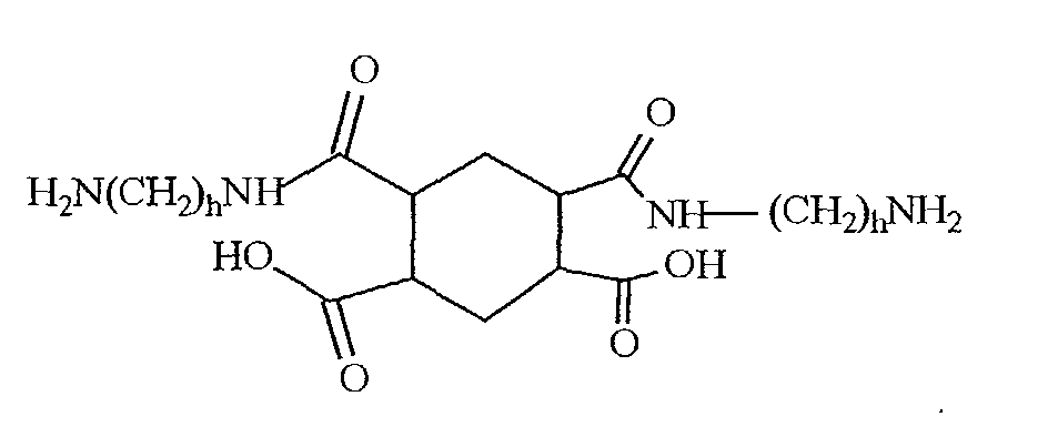 • R 2 -M 5 x and R 3 -M 6 y examples include Jeffamines, diaminohexane, 3,3'-diamino-N-methylpropylamine, 1,4-phenylenediamine, 4,4'-oxydianiline, succinic acid, adipic acid, 1,4-cyclohexanedicarboxilic acid, terephthalic acid, 4,4'-oxybis(benzoic acid), 2-aminoterephtalic acid, tris(2-aminoethyl)amine, trimesic acid, maleic anhydride, succinic anhydride, hexahydrophthalic anhydride, phthalic anhydride, glutaric anhydride, octenyl anhydride, decanyl anhydride, 2-dodecenyl-1-ylsuccinic anhydride, octen-1-ylsuccinic anhydride, 1,2,3,4-cyclopentane-tetra-car