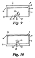 - Rails 11 are mounted inside the roof. As can be seen from Figure 3 , the ends of the upper and lower rails 11 are bent in order to facilitate insertion and removal of the filter container 3 from the roof.