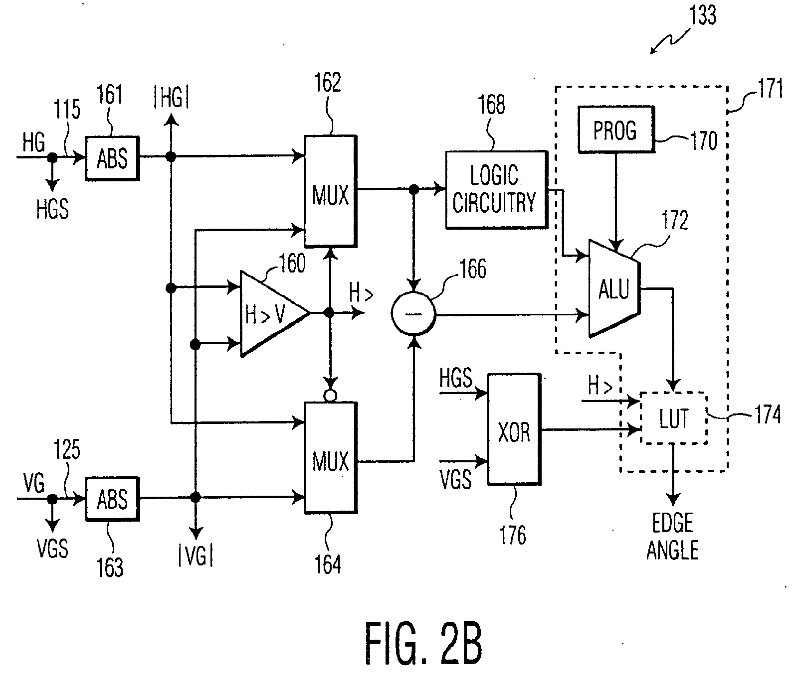 which replaces the ALU 170, program memory 172 and LUT 174 in Fig. 2B.